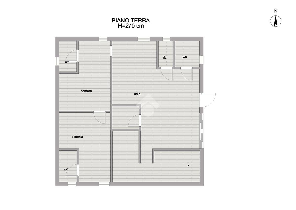 Piano Terra: Grande sala comune con cucina attrezzata, angolo lavaggio e zona servizi . Il piano ospita inoltre 2 camere con bagno privato.