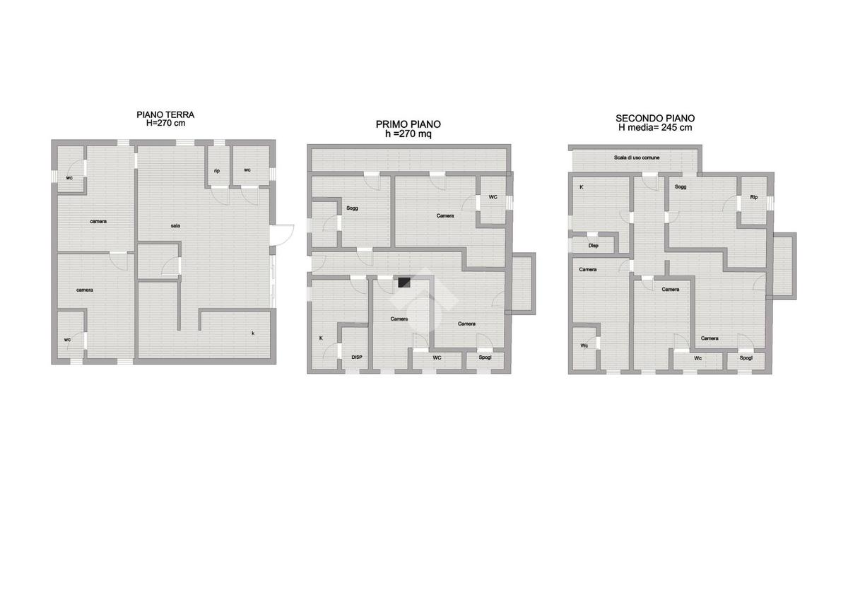 L’edificio si sviluppa su tre livelli ottimamente distribuiti: