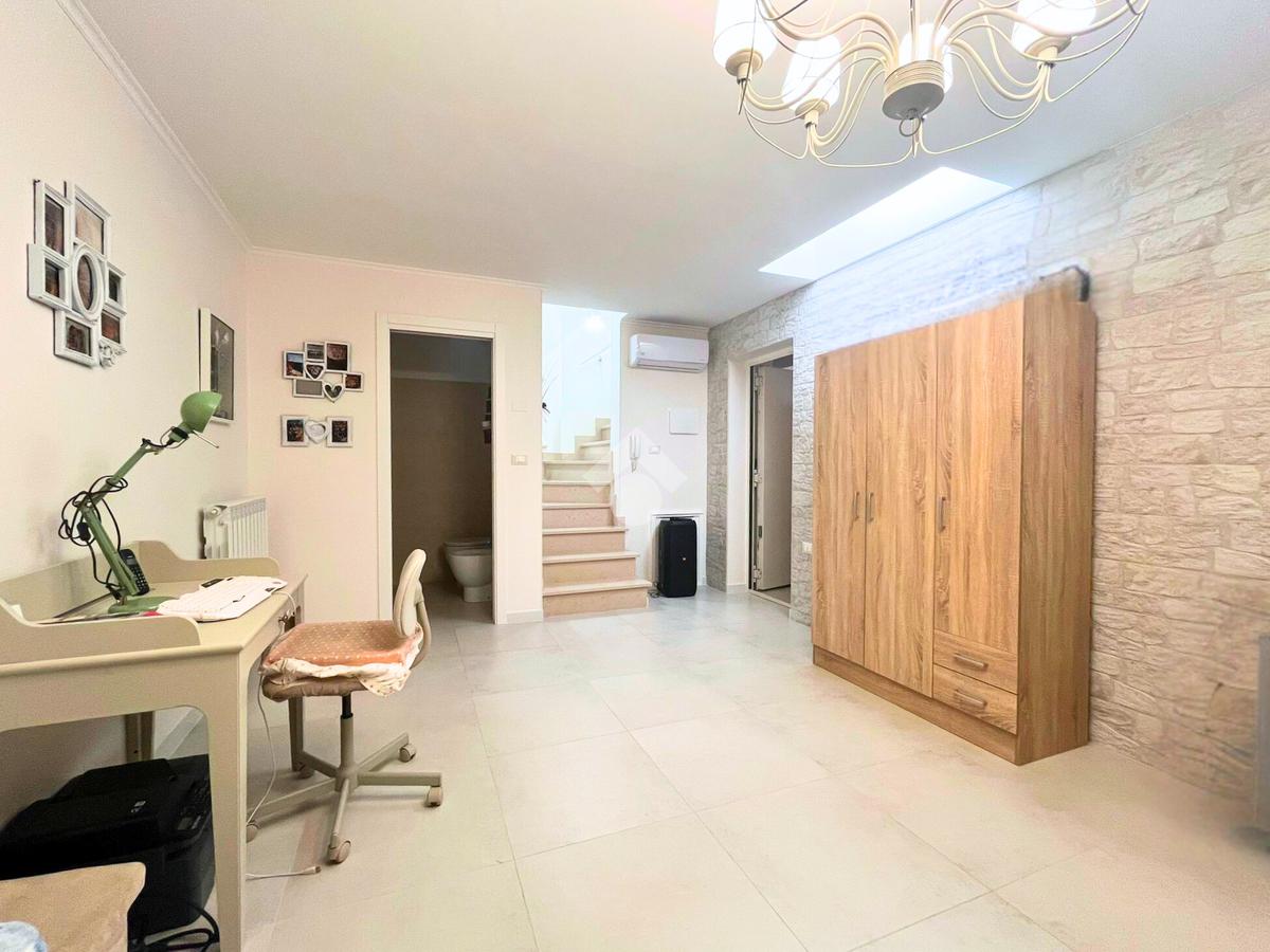 La tavernetta è direttamente collegata a un box auto di circa 25 mq, dotato di attacco per la cucina, elemento che rende l’immobile particolarmente funzionale e versatile.