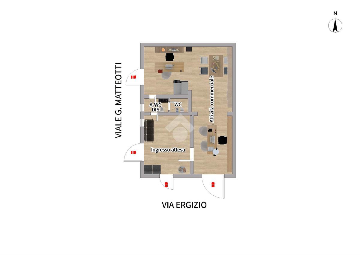 Varcata la soglia, l'immobile accoglie i visitatori con un ambiente dedicato a sala d'attesa o reception, uno spazio ideale per gestire l'accoglienza in modo professionale.