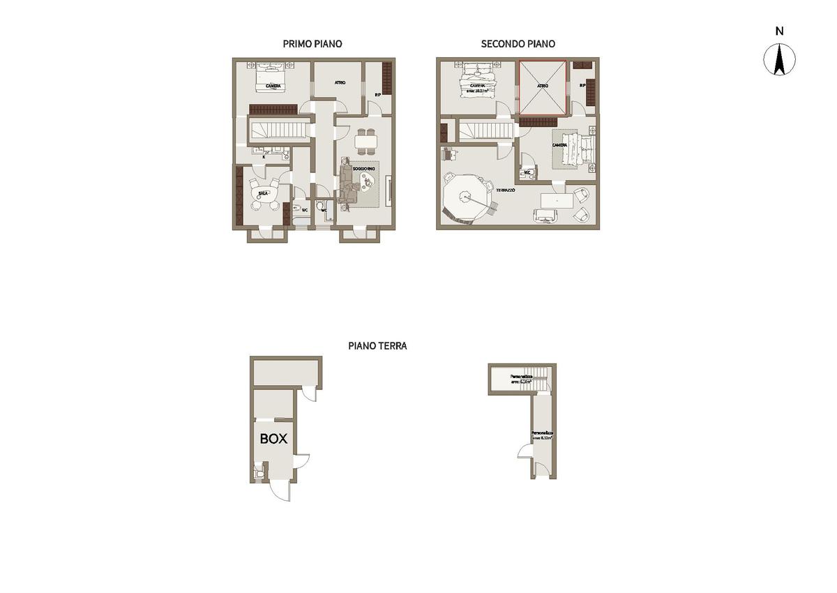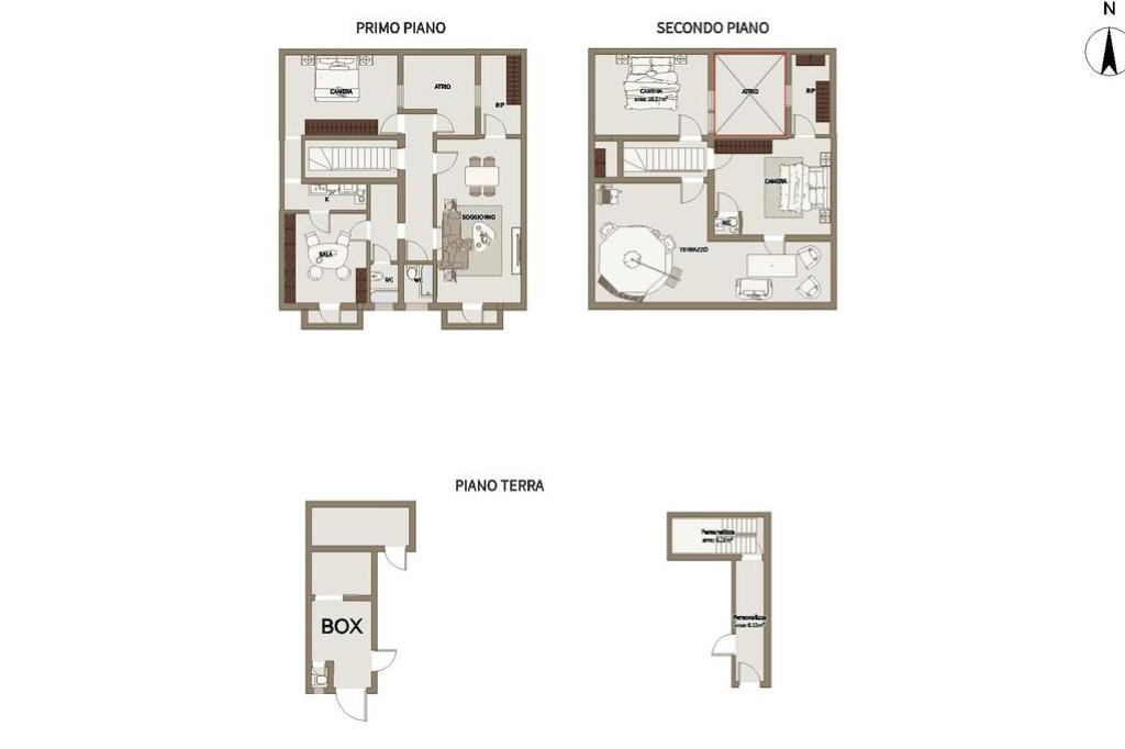 Al secondo piano troviamo: camera da letto, uno vano pluriuso ripostiglio, bagno di servizio e un terrazzo privato, ideale per godere di spazi esterni aggiuntivi e massima riservatezza.