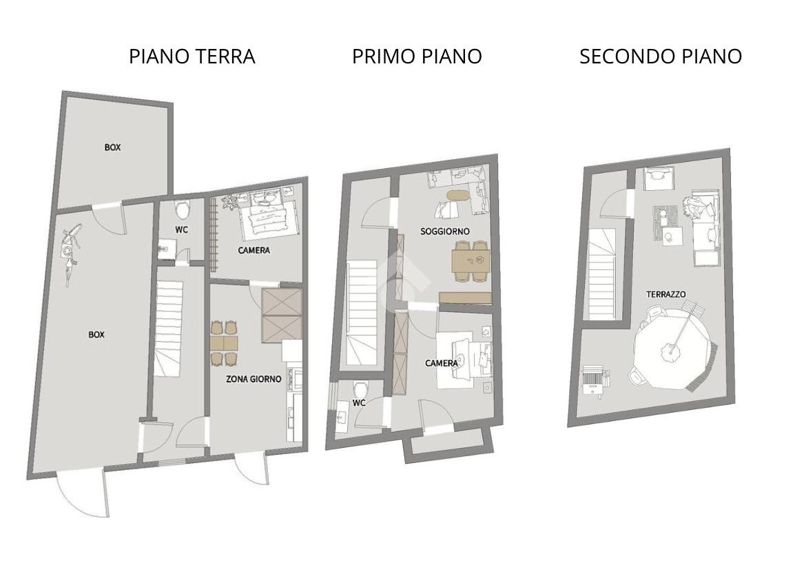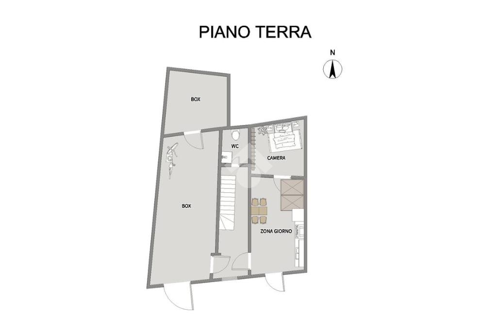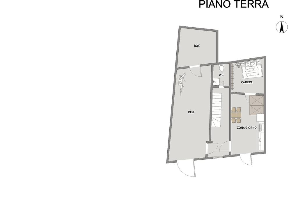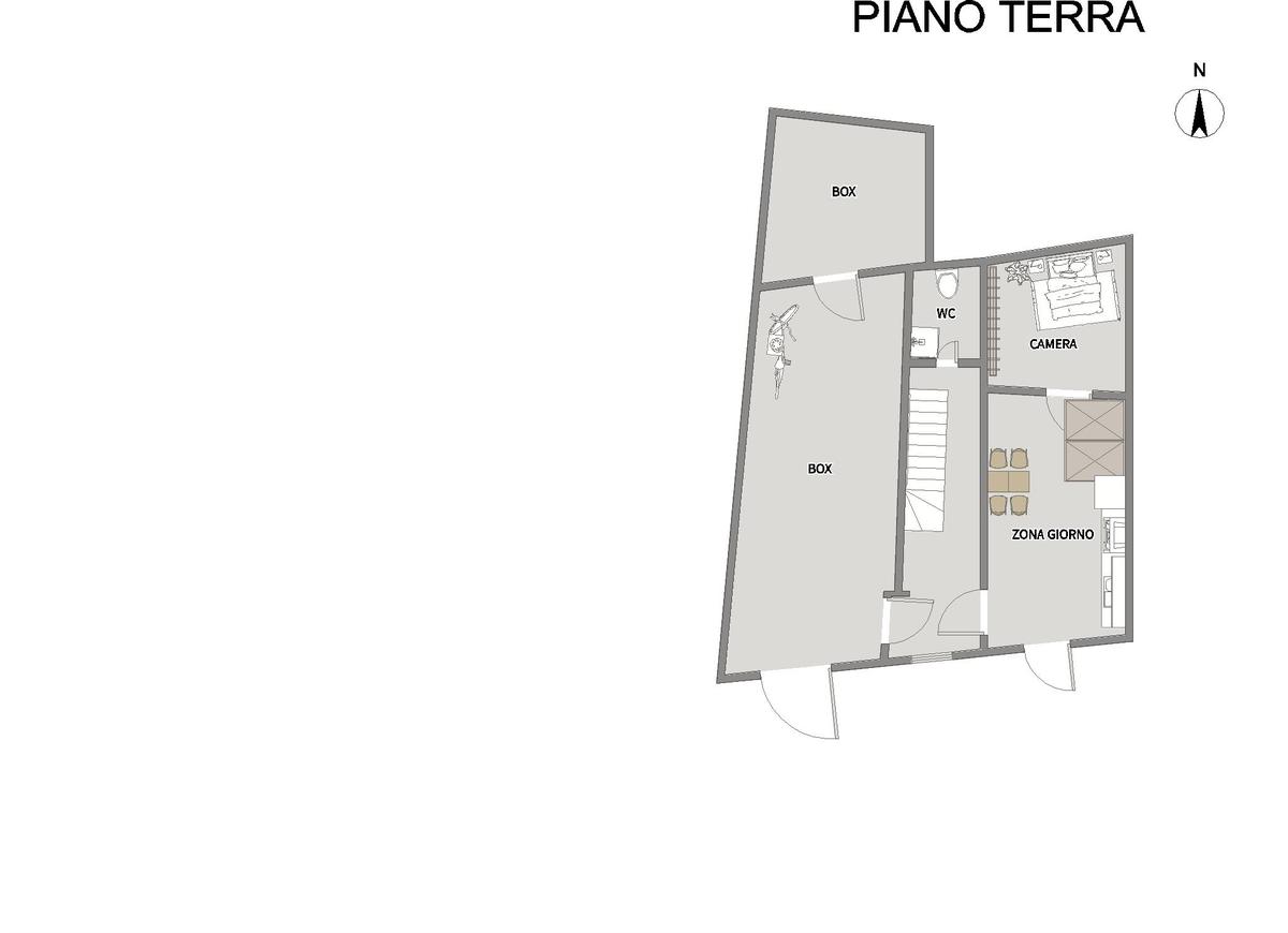 Piano terra con due vani, bagno e comunicazione diretta con box auto di circa 35 mq, comodo e funzionale;