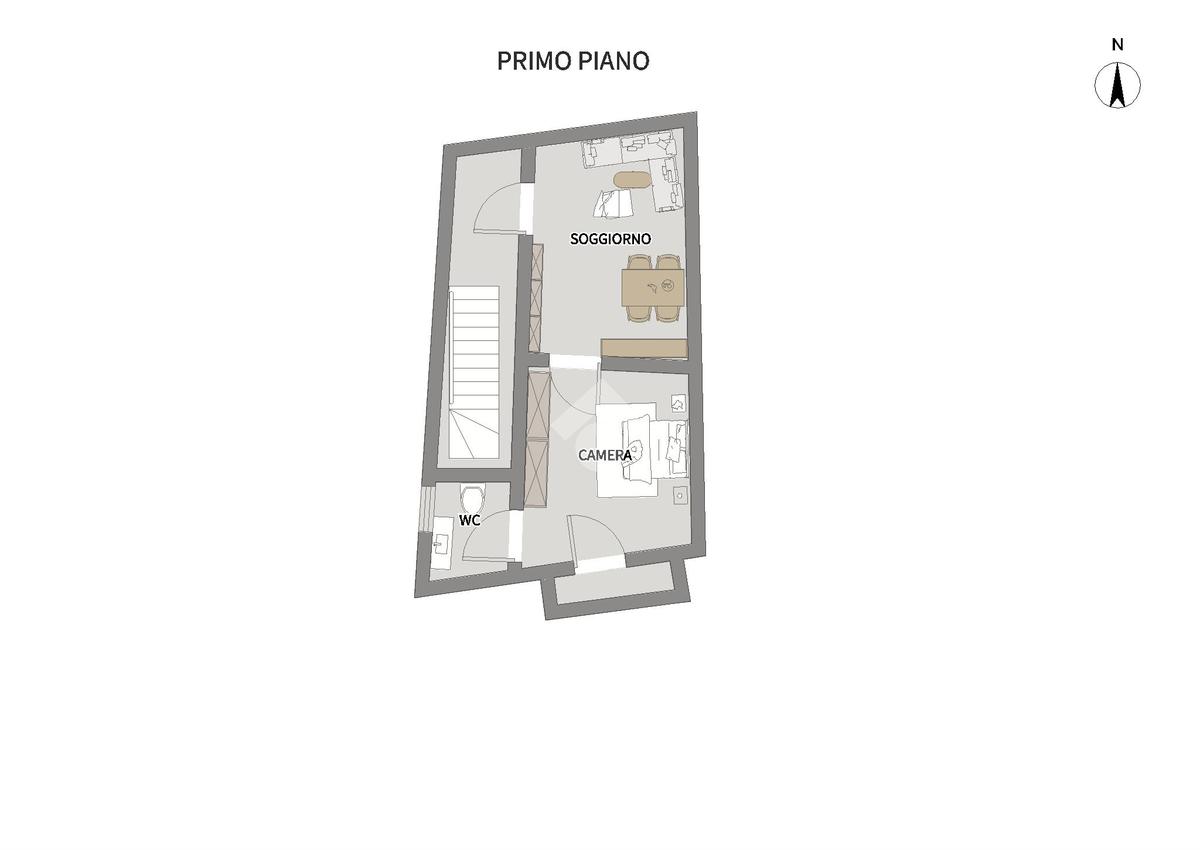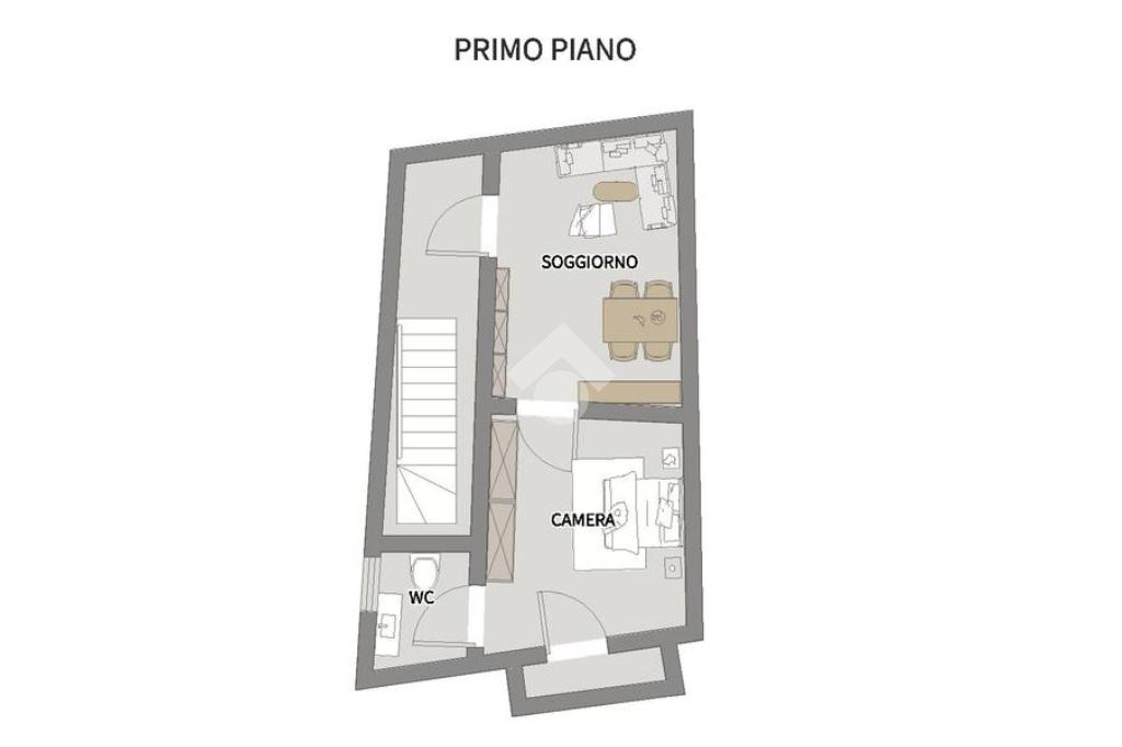 Primo piano con due vani e bagno;