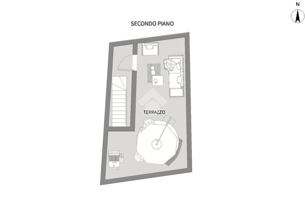 Secondo piano con ampio terrazzo, perfetto per momenti di relax, cene all’aperto o per creare una zona living esterna.
